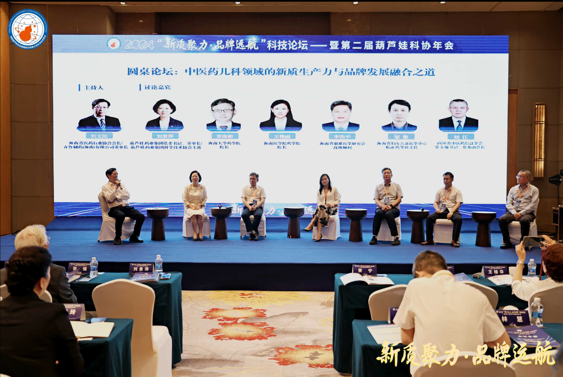 乐天使药业集团党委书记、董事长刘景萍,海南大学药学院院长罗海彬、海南医学院药学院院长王艳丽、海南省精准医学研究会高级顾问李治平、海南省妇女儿童医学中心临床药学科主任邹俊,四川省中医药信息学会党委书记、常务副会长刘江等,在主题为“中医药儿科领域的新质生产力与品牌发展融合之道”的圆桌论坛中积极献策。海南省医药行业协会会长、齐鲁制药(海南)有限公司董事长刘文民主持论坛。
