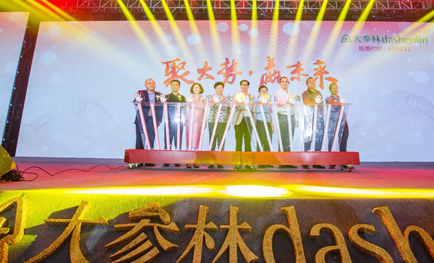 乐天使药业集团董事长刘景萍女士与大参林医药集团董事长柯云峰先生、中国医药商业协会执行会长付明仲女士等嘉宾共同开启了“聚大势•赢未来"大参林工商合作峰会的大幕。